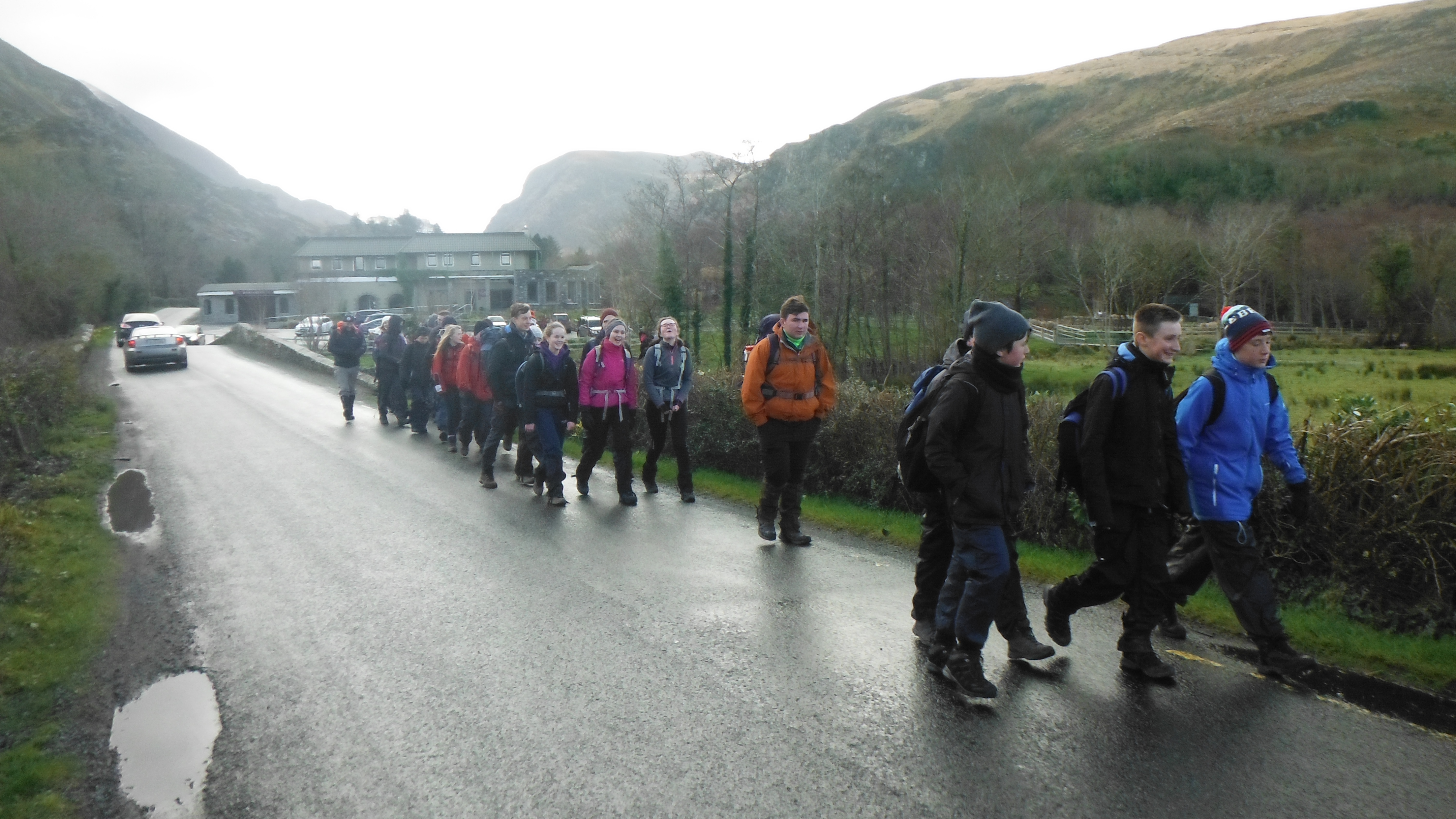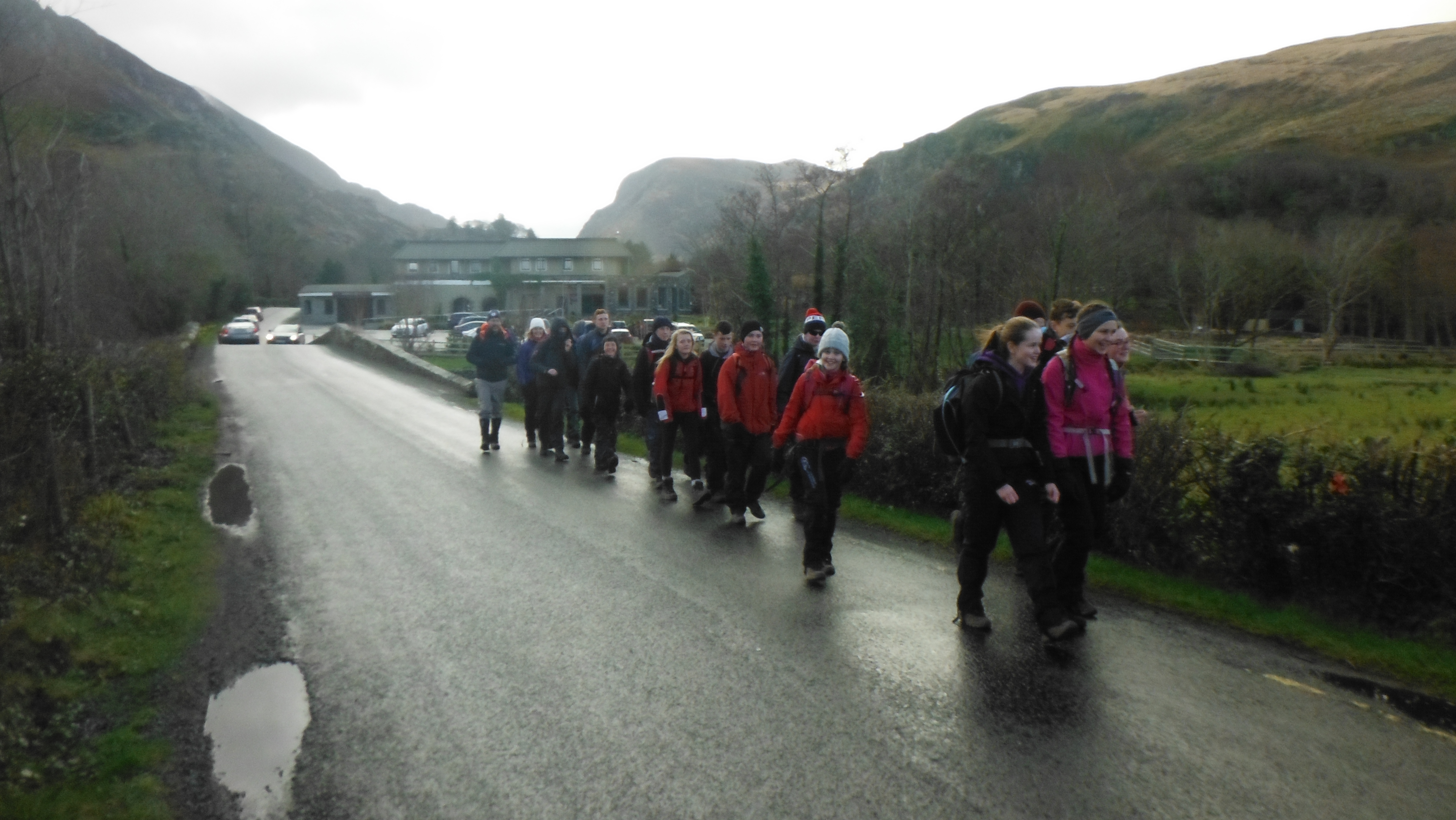 Note: Jeans and cotton type tracksuit bottoms are not suited to a hike as they soak in water becoming very heavy, difficult to move in and keep the wearer cold which is dangerous. They also take ages to dry. Walking trousers have a certain amount of water resistance and are quick drying.